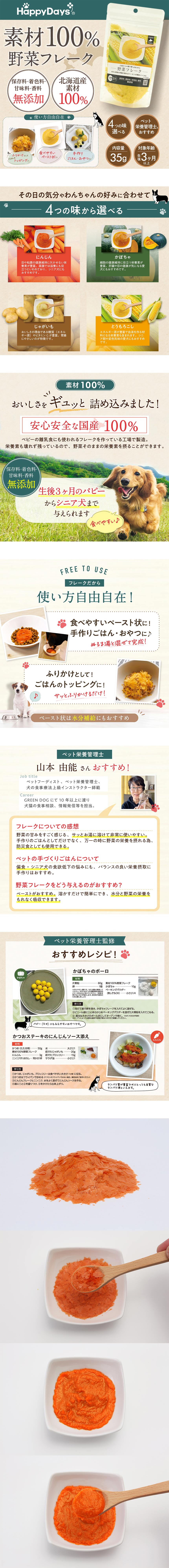北海道産のにんじんを使用、素材の栄養そのままのフレーク。