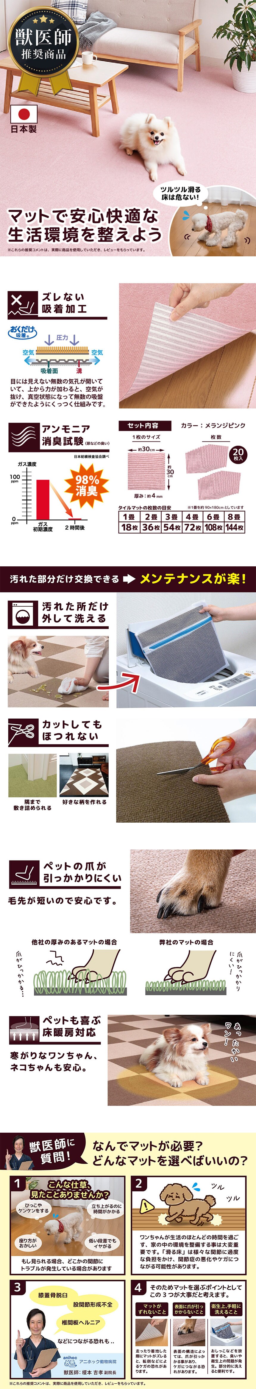 【D】(送料込)ペット用撥水タイルマット メランジピンク 20枚入×2個《沖縄・離島配送不可》