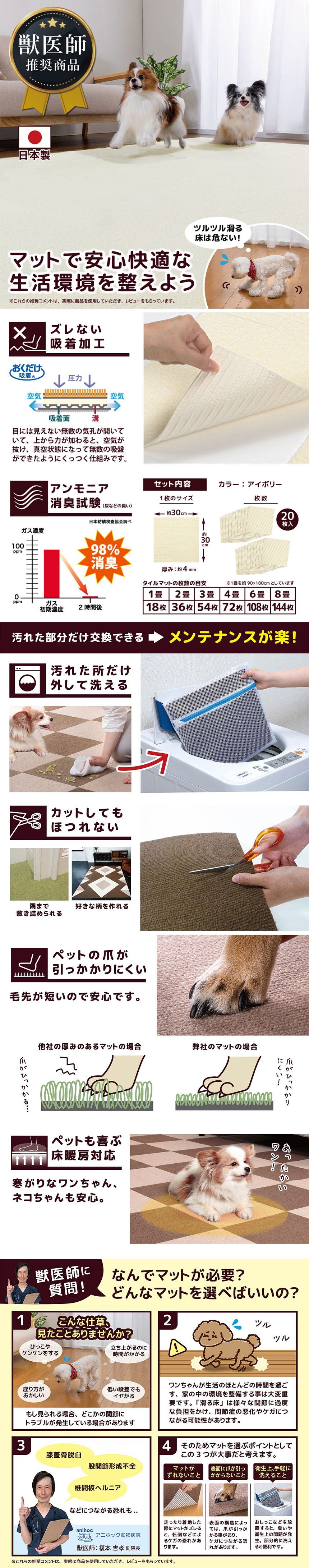 【D】(送料込)ペット用撥水タイルマット 同色 アイボリー 20枚入×1個《沖縄・離島配送不可》