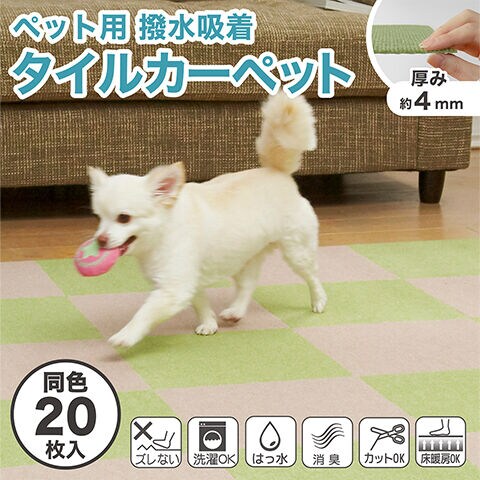 【D】(送料込)ペット用撥水タイルマット 同色 グリーン 20枚入×2個《沖縄・離島配送不可》