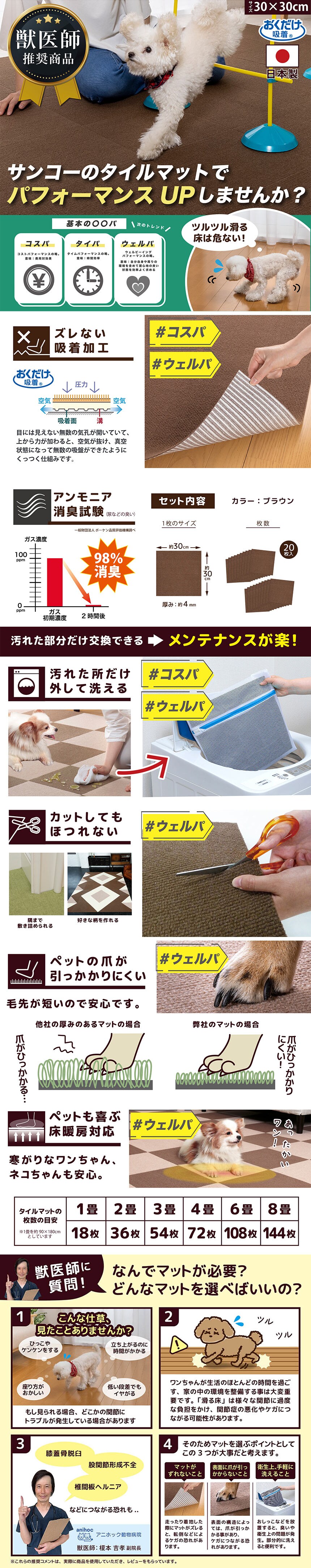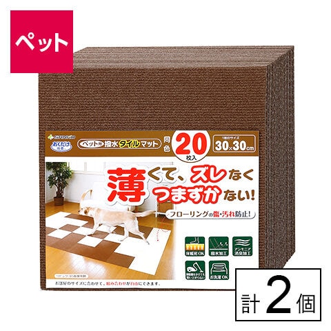 【D】(送料込)ペット用撥水タイルマット 同色 ブラウン 20枚入×2個《沖縄・離島配送不可》