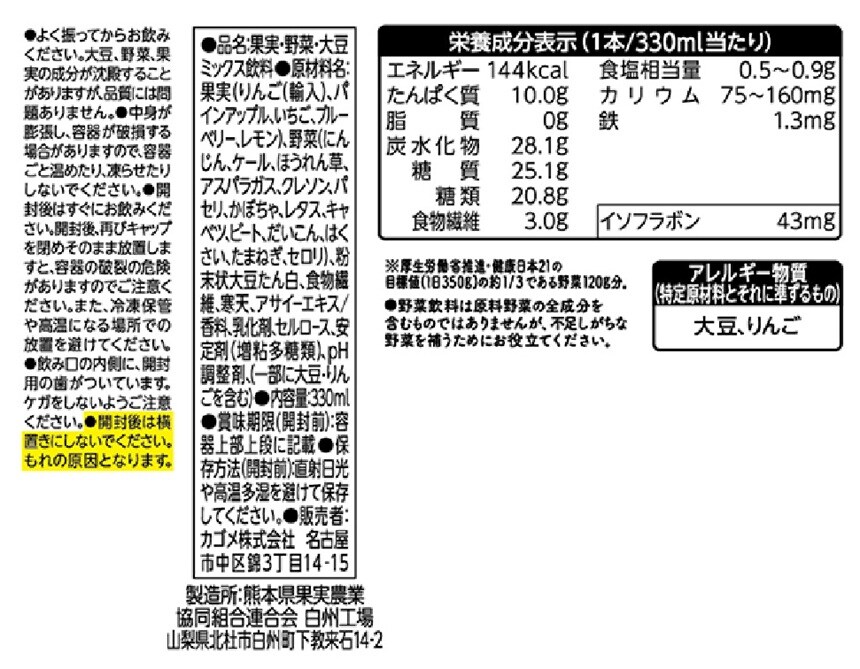 【B】カゴメ 野菜生活100 Smoothie SOY PROTEIN アサイー Mix 330ml×12本《沖縄・離島配送不可》