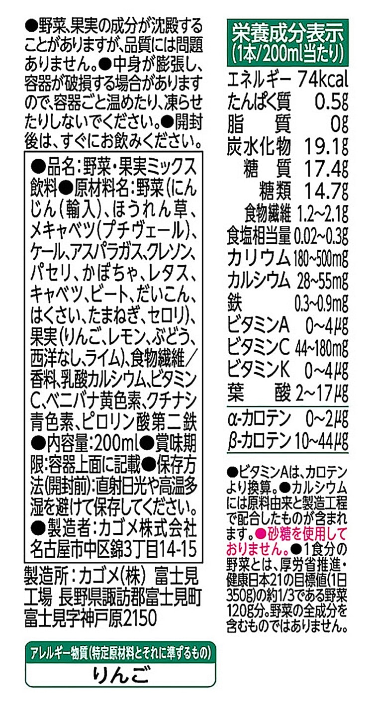 「野菜生活100」オリジナルは、20種類の野菜と3種類の果実を使用した野菜果実ミックスジュースです。