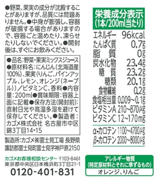 【B】カゴメ 野菜生活100 北海道産旬にんじんMix 200ml×24本《沖縄・離島配送不可》