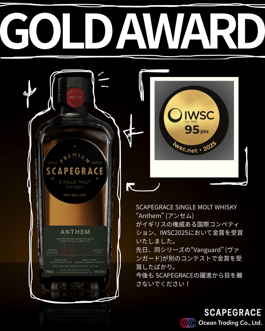 【A】(送料込)SCAPEGRACE シングルモルトウイスキー アンセム 46% 700ml《沖縄・離島配送不可》
