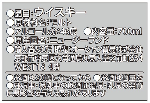 ピートの代わりにニュージーランド特有のマヌカチップでスモークしたシングルモルトウイスキー