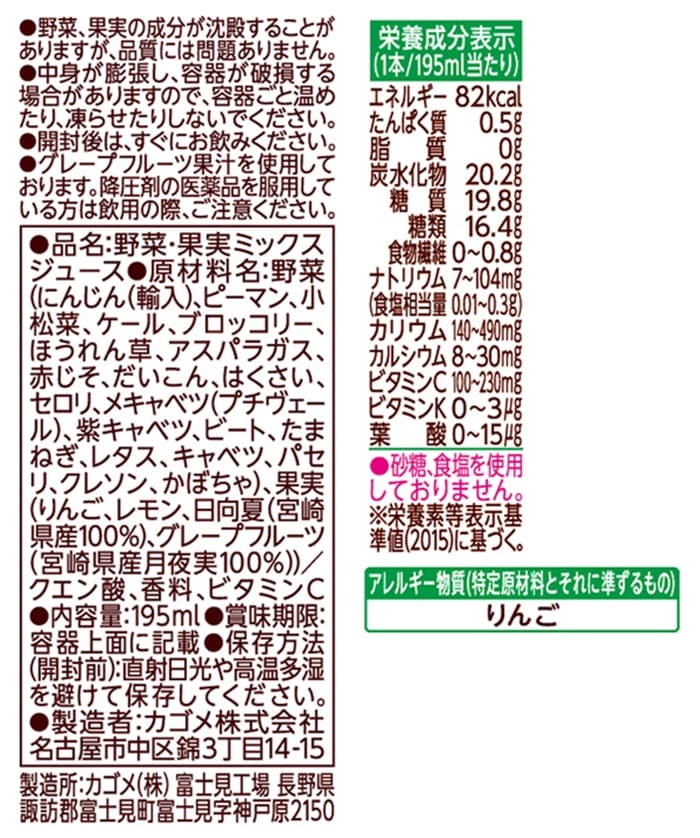 【B】カゴメ 野菜生活100 宮崎月夜実グレープフルーツ&日向夏 195ml×24本《沖縄・離島配送不可》
