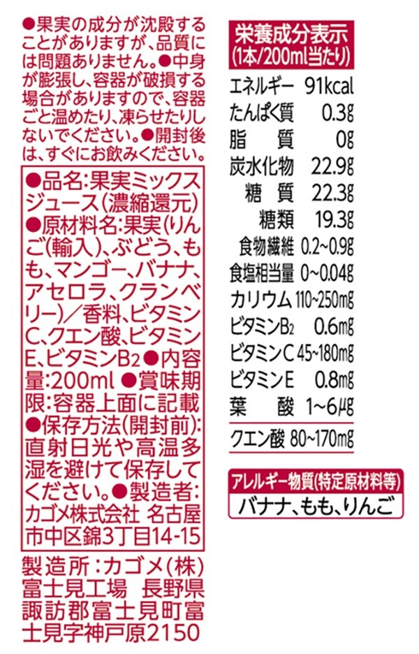 白桃のまろやかな甘みと、アセロラの甘酸っぱさを楽しみながら、ビタミンC・B2・Eがたっぷり摂れる春限定の100%果実ミックスジュースです。