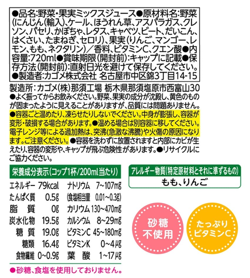 白桃と黄桃とネクタリンのまろやかな甘さが特徴の野菜・果実ミックスジュース