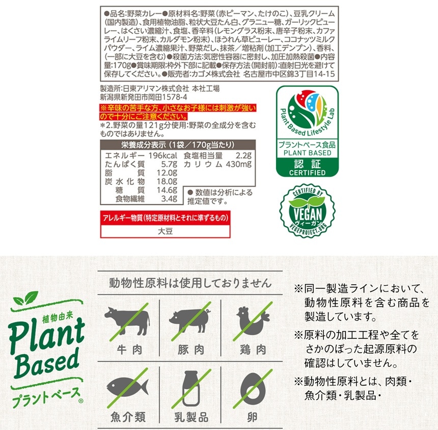 野菜の甘味や旨味とスパイシーな味わいがくせになる、動物性原料不使用※でも食べ応えのある美味しさが特徴です。