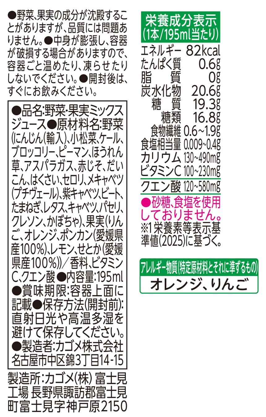 砂糖不使用で1日分のビタミンC※と野菜も摂れます。