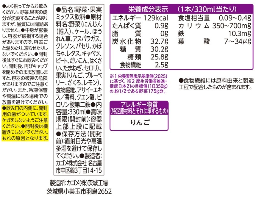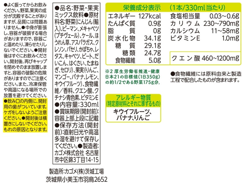 野菜飲料は原料野菜の全成分を含むものではありませんが、不足しがちな野菜を補うためにお役立てください。