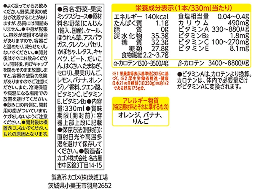野菜飲料は原料野菜の全成分を含むものではありませんが、不足しがちな野菜を補うためにお役立てください。