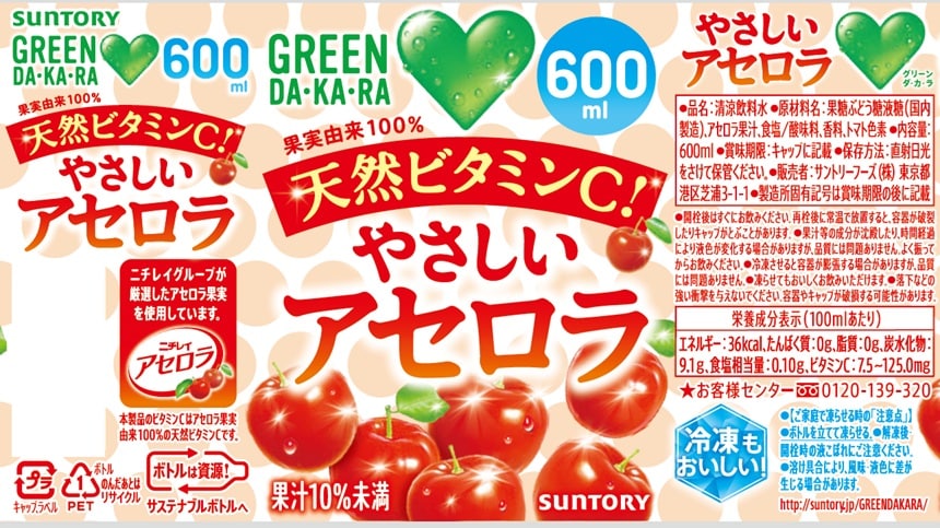 【B】サントリー GREEN DA・KA・RA やさしいアセロラ 600ml×24本《沖縄・離島配送不可》