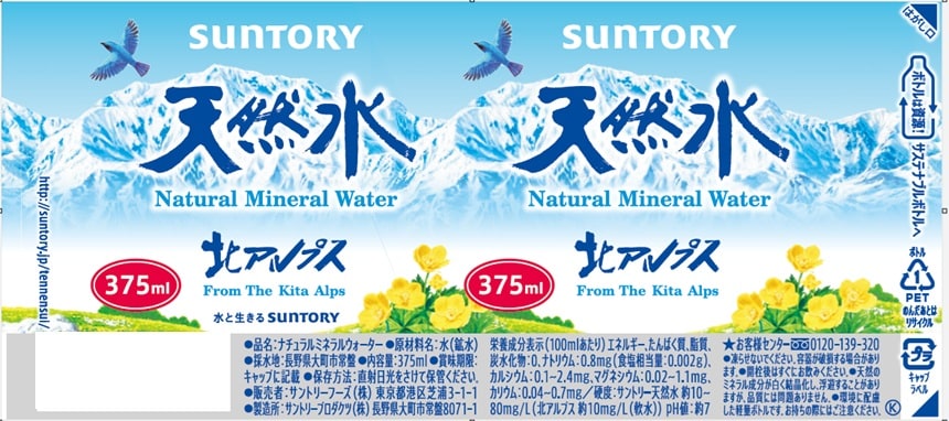 スリムで持ち運びに便利な小容量サントリー天然水。