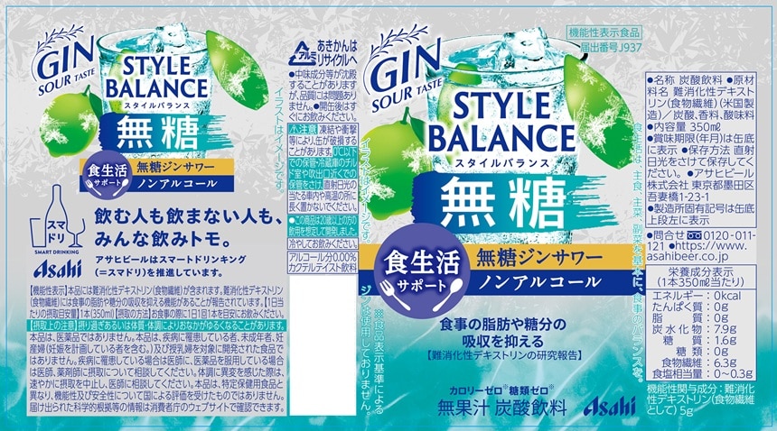 【F】(送料込)アサヒ スタイルバランス 食生活サポート 無糖ジンサワーノンアルコール 350ml×24本《沖縄・離島配送不可》