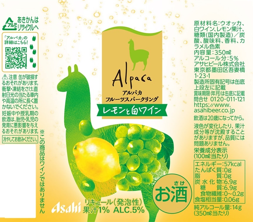 【F】(送料込)アサヒ アルパカフルーツスパークリング レモンと白ワイン 350ml×24本《沖縄・離島配送不可》