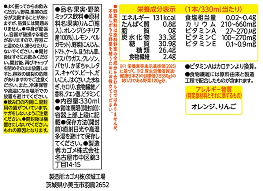 野菜飲料は原料野菜の全成分を含むものではありませんが、不足しがちな野菜を補うためにお役立てください。