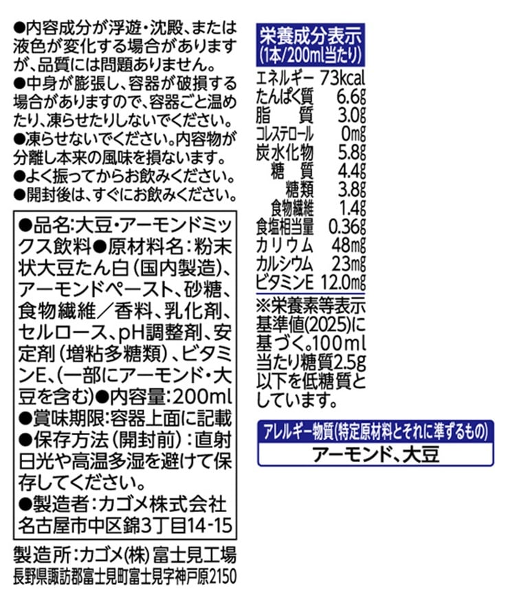 【B】カゴメ アーモンド・ブリーズ プロテイン 200ml×72本《沖縄・離島配送不可》