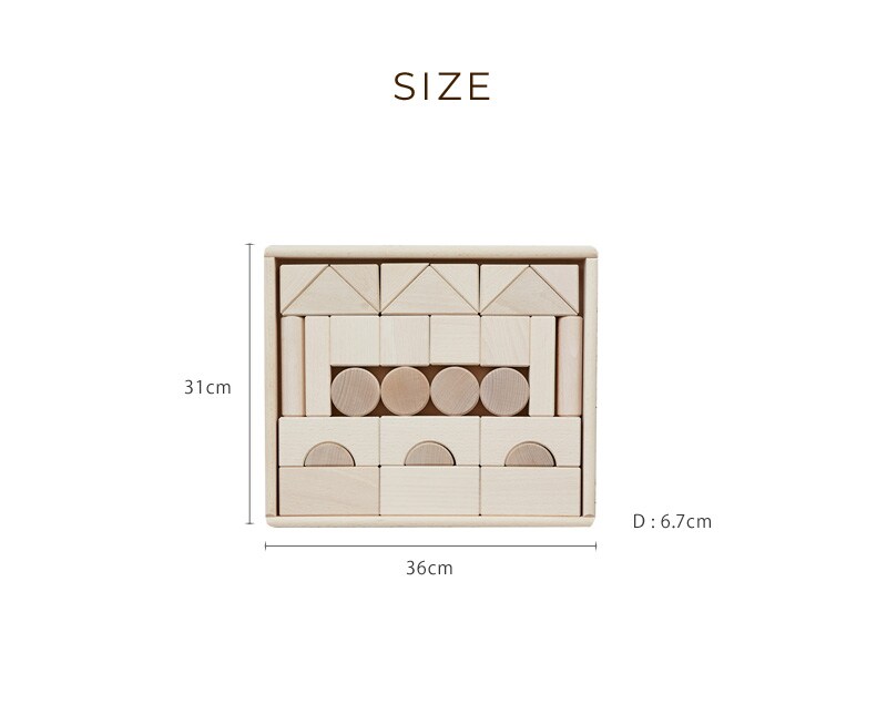 ・やさしい木の温もりがたっぷり。ベーシックで飽きのこないシンプルなつみきセットです。木の質感をシンプルに楽しめる無塗装タイプです。
