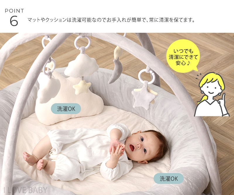 赤ちゃん 新生児 おもちゃ プレイマット ベビー ベビージム KISS BABY キスベビー まぁるいおそらのプレイジムマット 1010415171 ミルクグレー