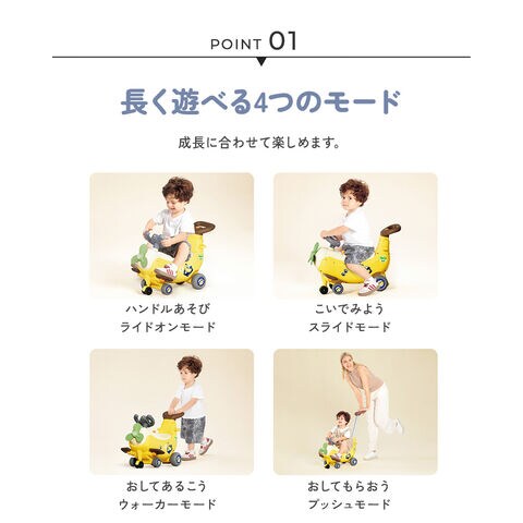 歩き始めのお子さまのサポートから、自分で乗れるようになるまで成長に合わせて長く乗れます