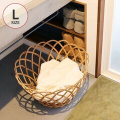 商品説明:皮付きラタンを一つ一つ丁寧に編み込んだバスケット「THE AROROG」