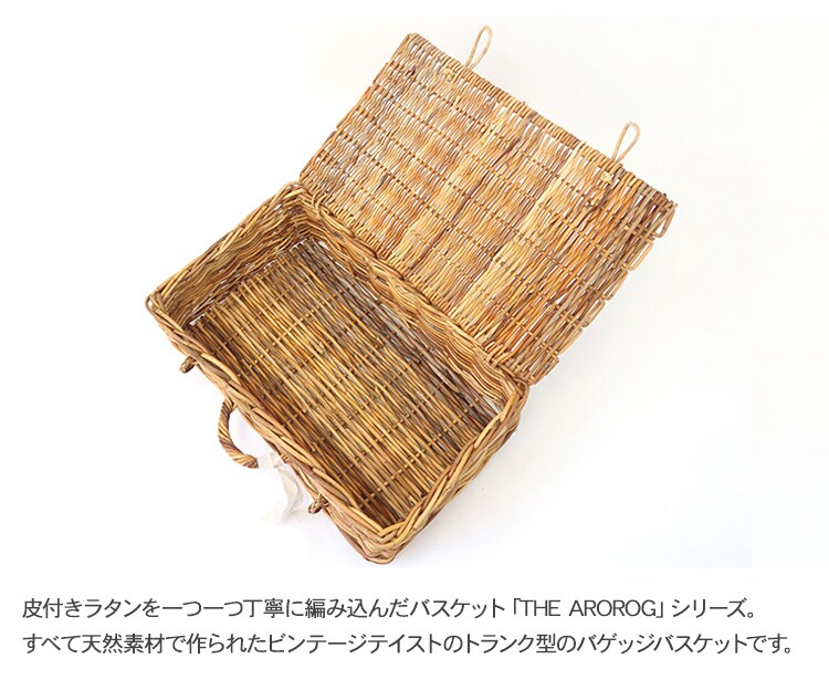 商品説明:皮付きラタンを一つ一つ丁寧に編み込んだバスケット「THE AROROG」シリーズ