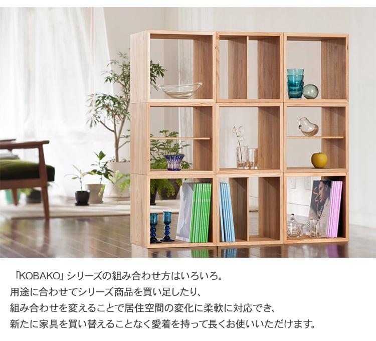 オークヴィレッジ KOBAKO コバコ 木製 無垢 家具 シェルフ スタッキング オープンラック ディスプレイラック リビング収納 棚 カラーボックス 子供部屋 北欧 インテリア ナチュラル シンプル おしゃれ 国産 日本製