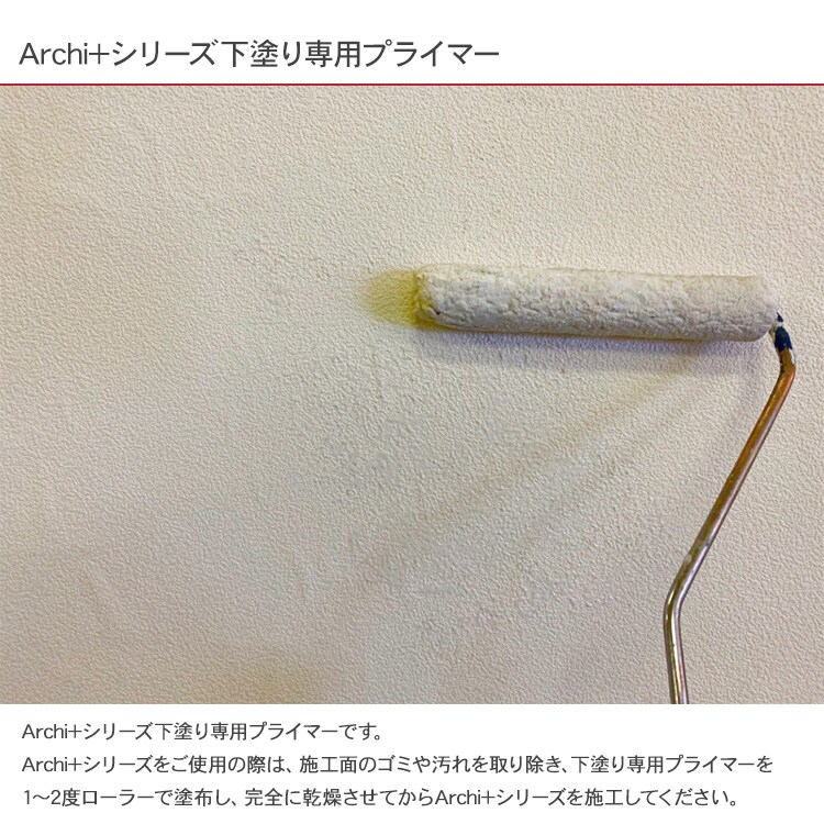 Archi+シリーズをご使用の際は、施工面のゴミや汚れを取り除き、下塗り専用プライマーを1~2度ローラーで塗布し、完全に乾燥させてからArchi+シリーズを施工してください。