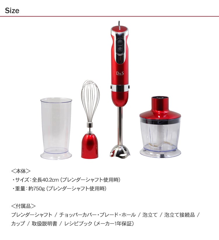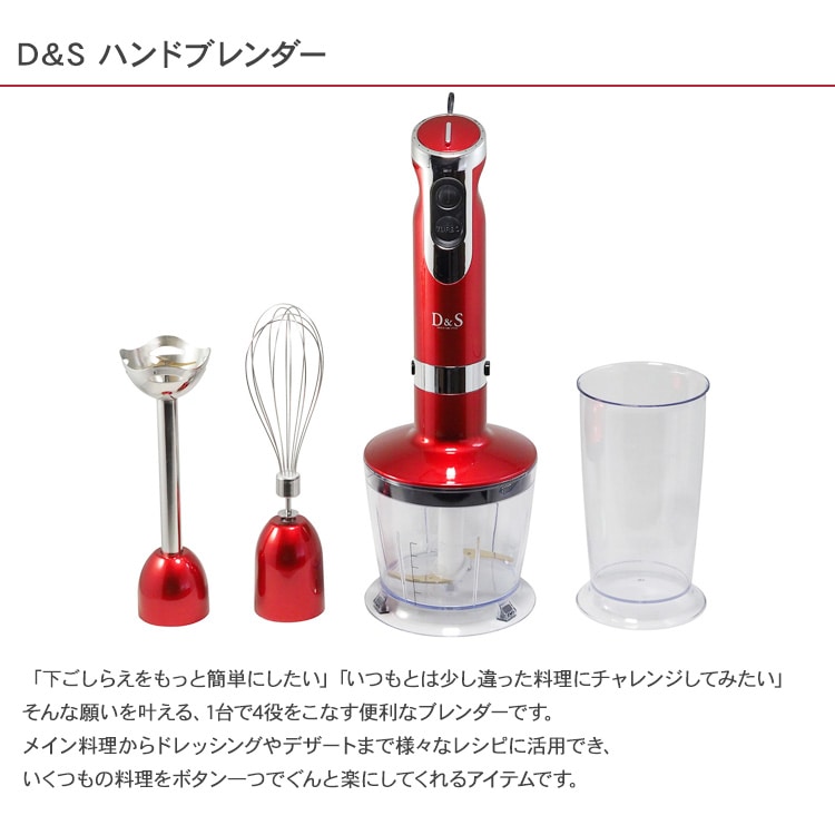 D&S ハンドブレンダー 調理家電 調理器具 ブレンダー 簡単 フードプロセッサー つぶす まぜる きざむ 泡立て 多機能 料理 便利 時短 キッチン キッチン家電 キッチン用品