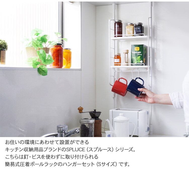 平安伸銅工業 SPLUCE 突っ張りキッチンラック スリムポールラック ハンガーset ホワイト Sサイズ SPL-1