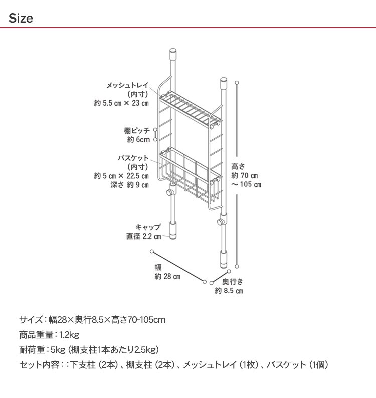 サイズ:幅28×奥行8.5×高さ70-105cm