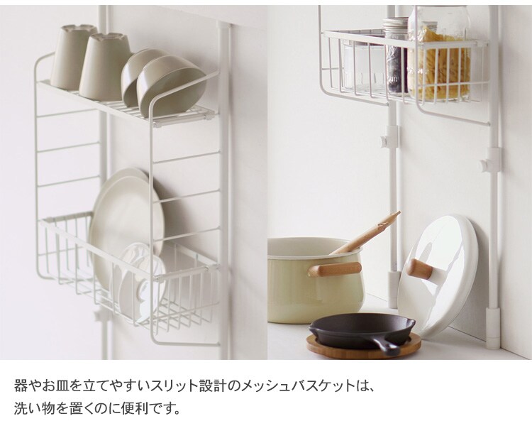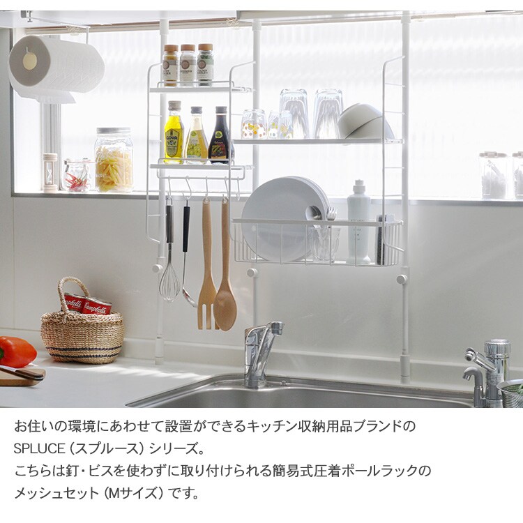 平安伸銅工業 SPLUCE 突っ張りキッチンラック スリムポールラック メッシュ set Mサイズ ホワイト SPL-4
