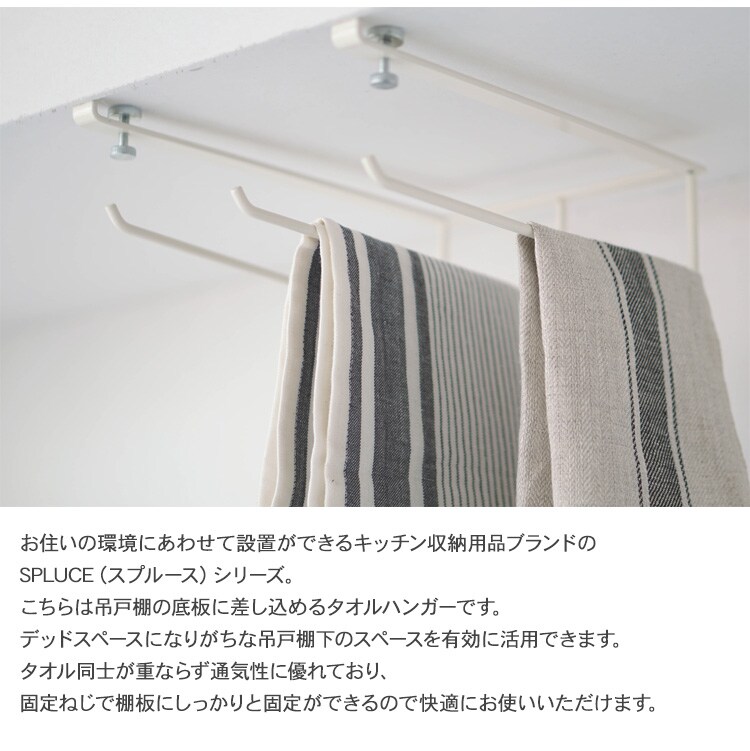 平安伸銅工業 SPLUCE 吊戸棚 タオルハンガー ホワイト 耐荷重:ハンガー1本0.1kg×3 SPH-2