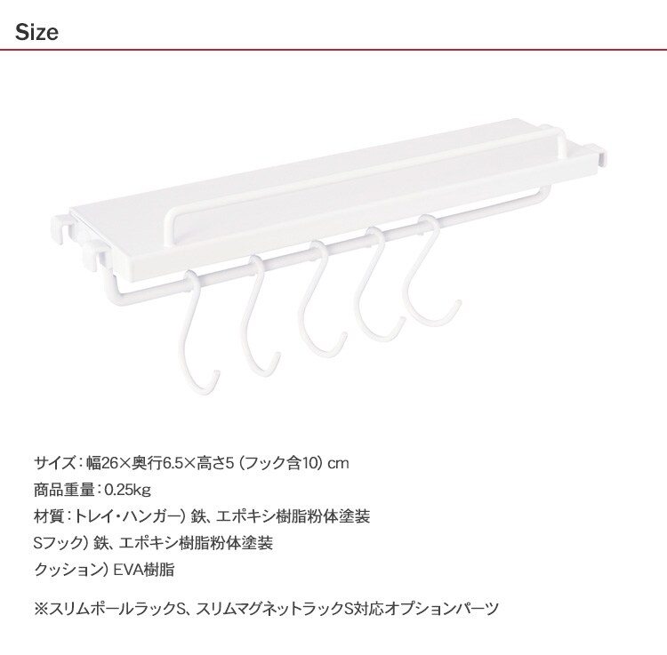 サイズ:幅26×奥行6.5×高さ5(フック含10)cm