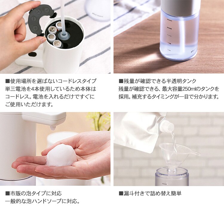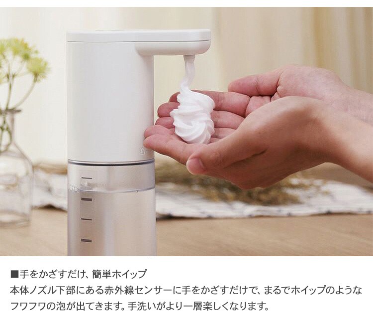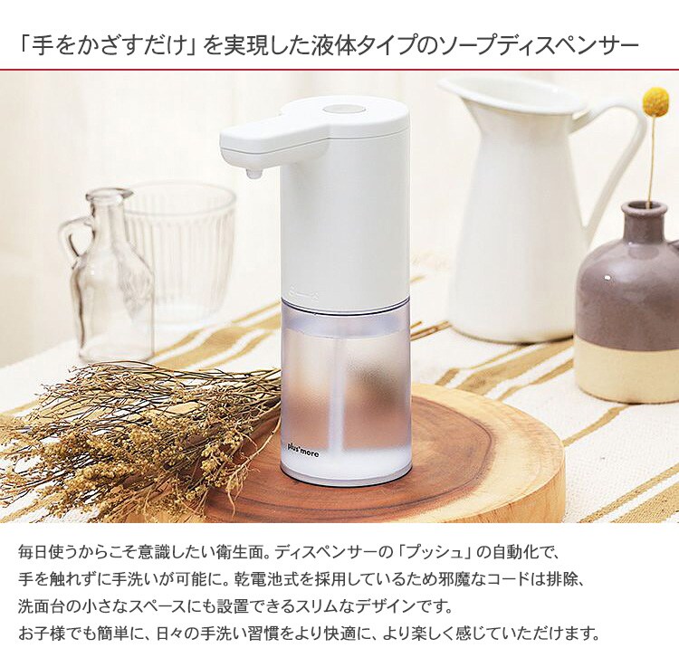 plus more プラスモア オートディスペンサー フォームタイプ 衛生 手指消毒器 除菌 ウイルス対策 電動 電池 防水 自動 非接触 オフィス 自宅 おしゃれ コードレス