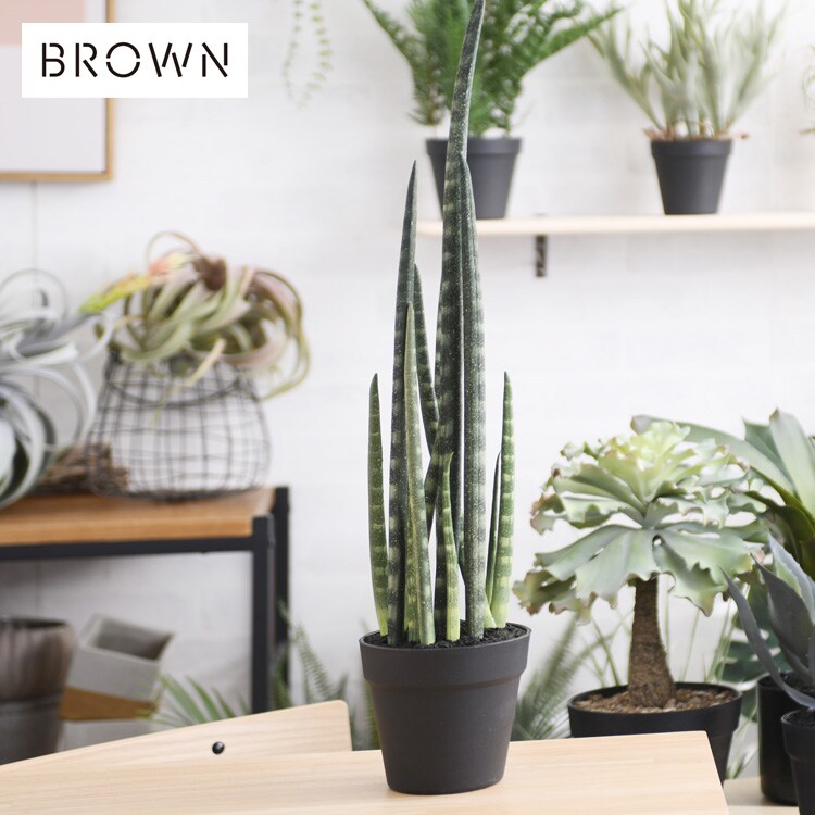 Brown. ブラウン サンセベリア ポット 観葉植物 フェイクグリーン インテリアグリーン 多肉 多肉植物 鉢 おしゃれ ボタニカル グリーンディスプレイ リビング 玄関 カフェ 店舗