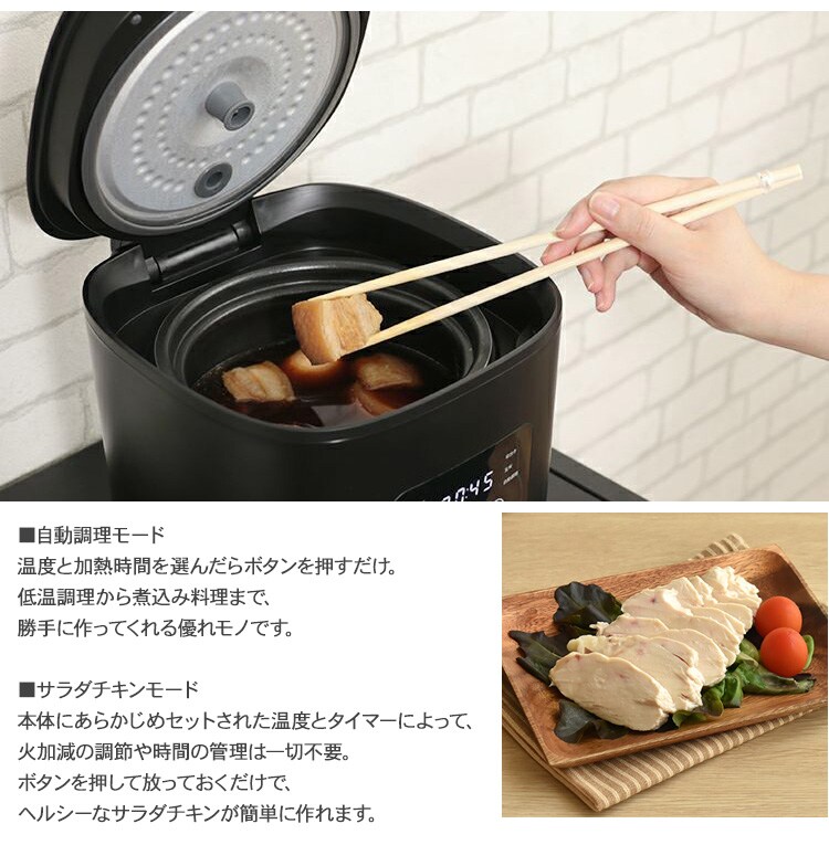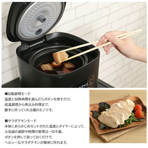 さらにサラダチキンを自動で作れるモードや、温度と調理時間をレシピに合わせて選ぶ自動調理モードまで。