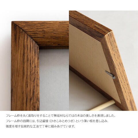 フレーム枠の四隅には、引込留接という薄い板を差し込み強度を増す伝統的な工法で丁寧に組みあげています。