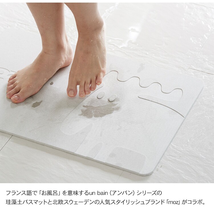 商品説明:フランス語で「お風呂」を意味する「un bain(アンバン)」シリーズの大人気の珪藻土バスマットと北欧スウェーデンのインテリアメーカー「FARG&FORM社」の人気スタイリッシュブランド「moz」がコラボ。