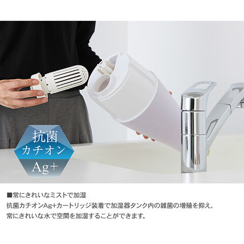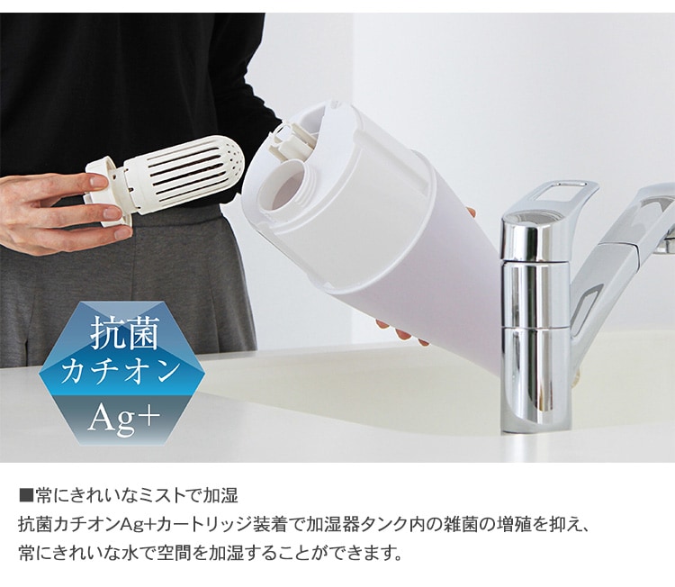 抗菌カチオンAg+カートリッジ装着で、加湿器タンク内の雑菌の増殖を抑え、常にきれいな水で空間を加湿することができます。