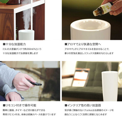 PRISMATE プリズメイト きれいなミストで加湿する アロマ超音波式加湿器 Sablier 加湿器 アロマオイル リモコン付き 花粉 清潔 予防 抗菌 省エネ エコ デスク リビング 寝室 おしゃれ シンプル インテリア