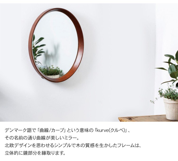 商品説明:デンマーク語で「曲線/カーブ」という意味の「kurve(クルベ)」、その名前の通り曲線が美しいミラー。