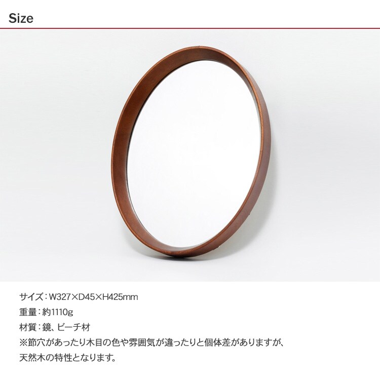 北欧デザインを思わせるシンプルで木の質感を生かしたフレームは、立体的に鏡部分を縁取ります。