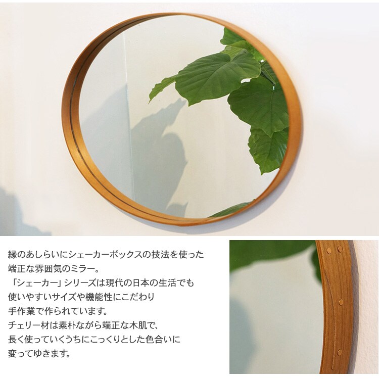 商品説明:縁のあしらいにシェーカーボックスの技法を使った、端正な雰囲気のミラー。