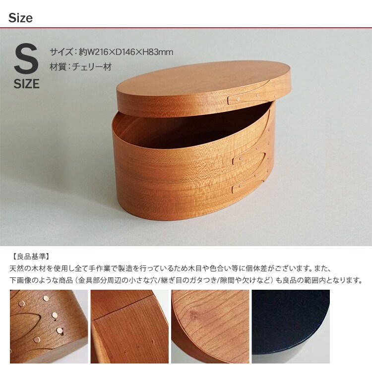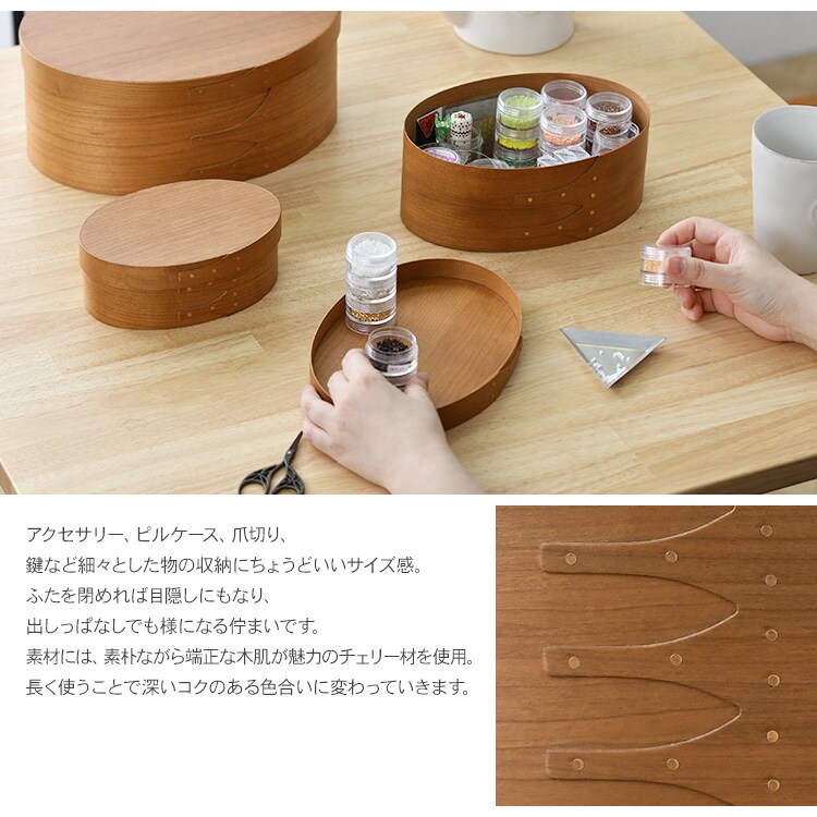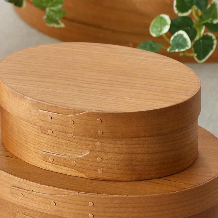 シェーカーボックスをモチーフにして作られた小さめのオーバルボックス(Sサイズ)です。