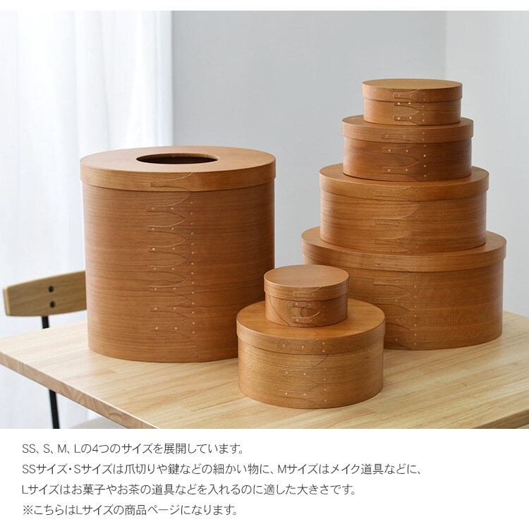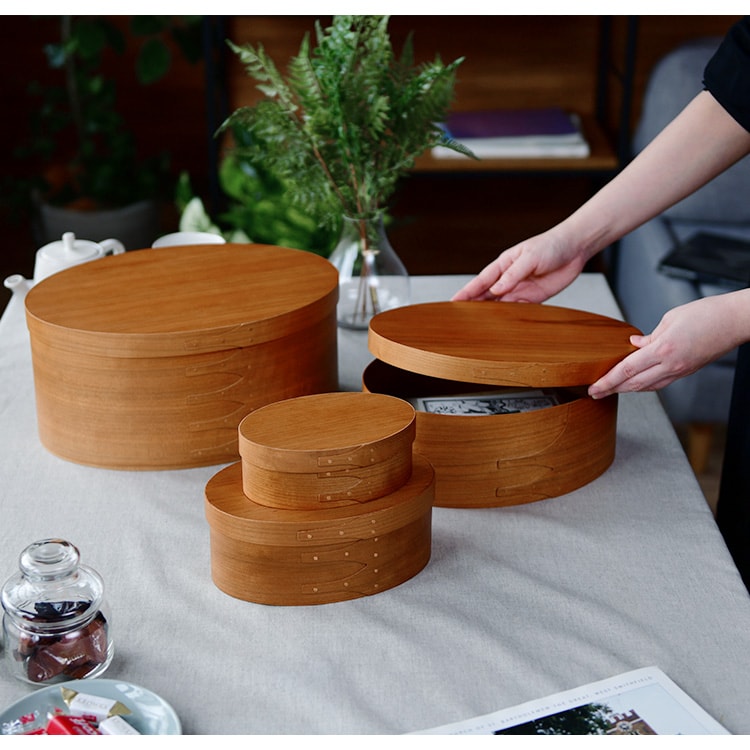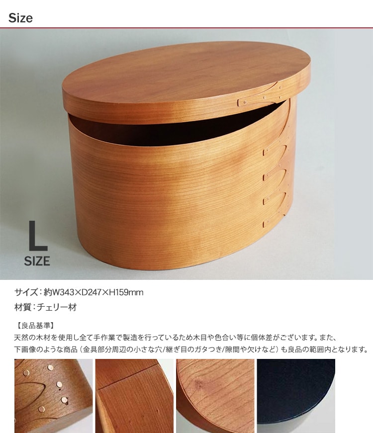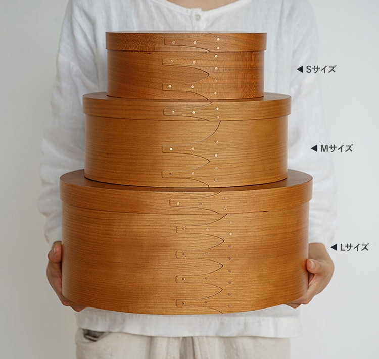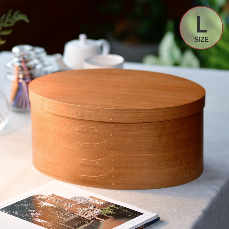 シェーカーボックスをモチーフにして作られた小さめのオーバルボックス(Lサイズ)です。