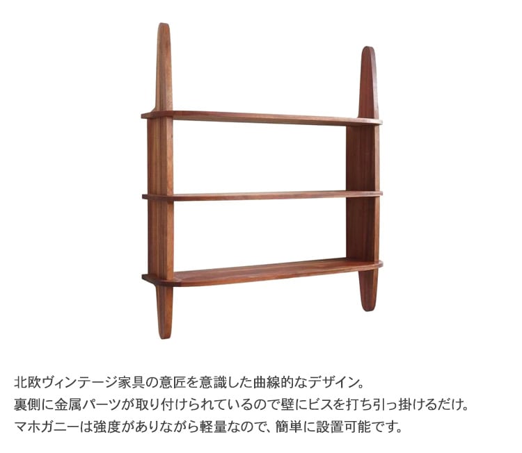 KOKO 3シェルフ 北欧 ヴィンテージ家具 マホガニー材 壁面収納 壁面家具 取り付け簡単 リビング キッチン 玄関 インテリア