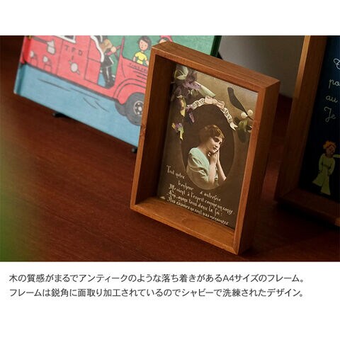 商品説明:木の質感がまるでアンティークのような落ち着きがある、A4サイズのフレーム。